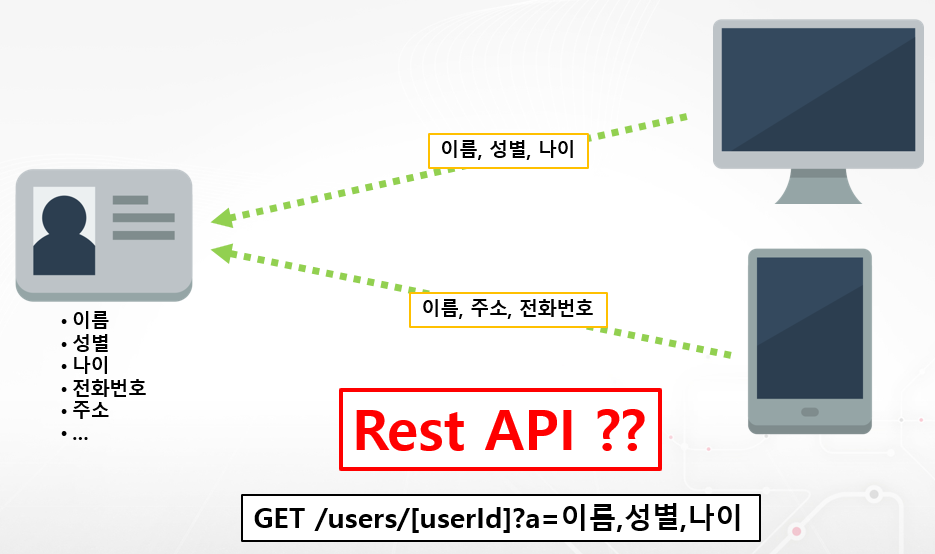 - 같은 정보(화면상의 한 유저에 대한 데이터)를 동일한 API를 가지고 다른 데이터를 받을 수 있도록할 수 있는 방법