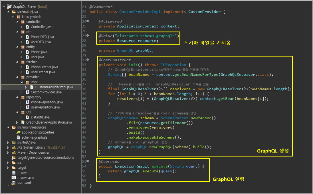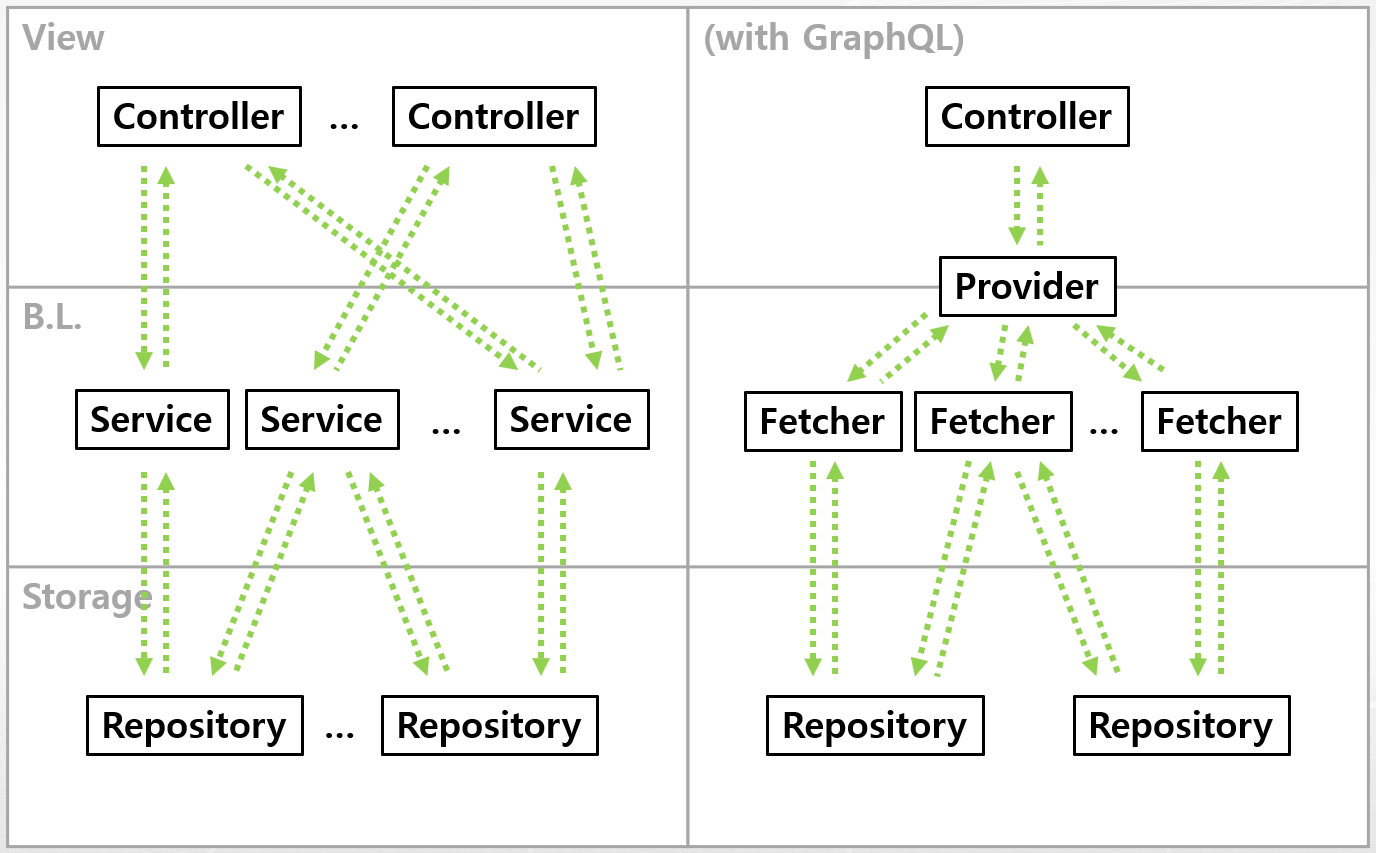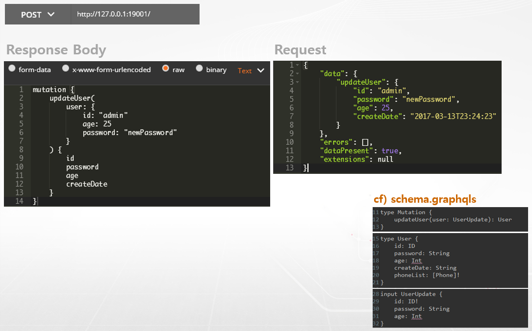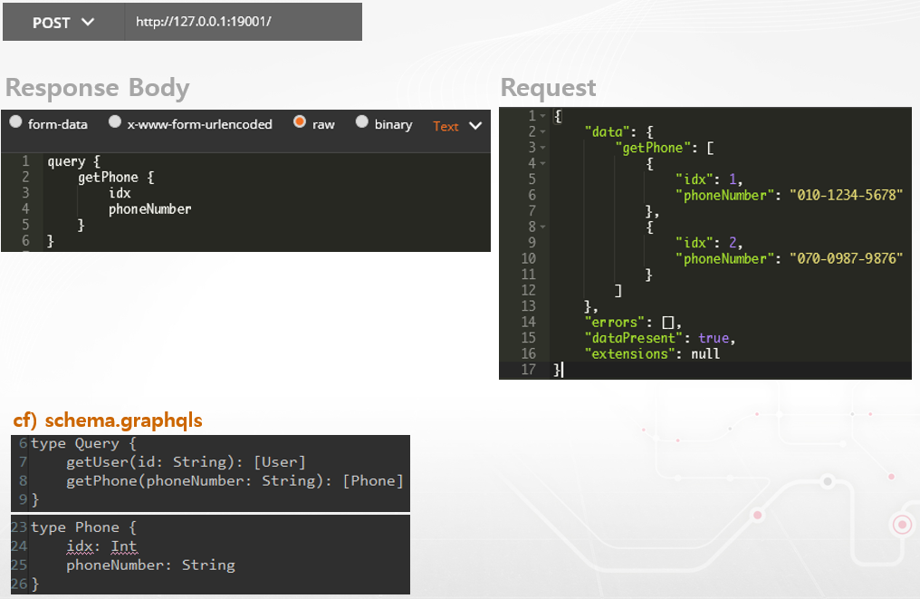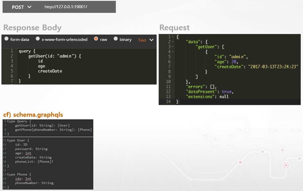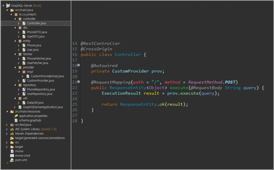 RestAPI와는 다르게 하나의controller를 가지고 모두 호출할 수 있다.controller에서도 단순히query(request body)를provider에게 전달하는 역할만을 수행한다.